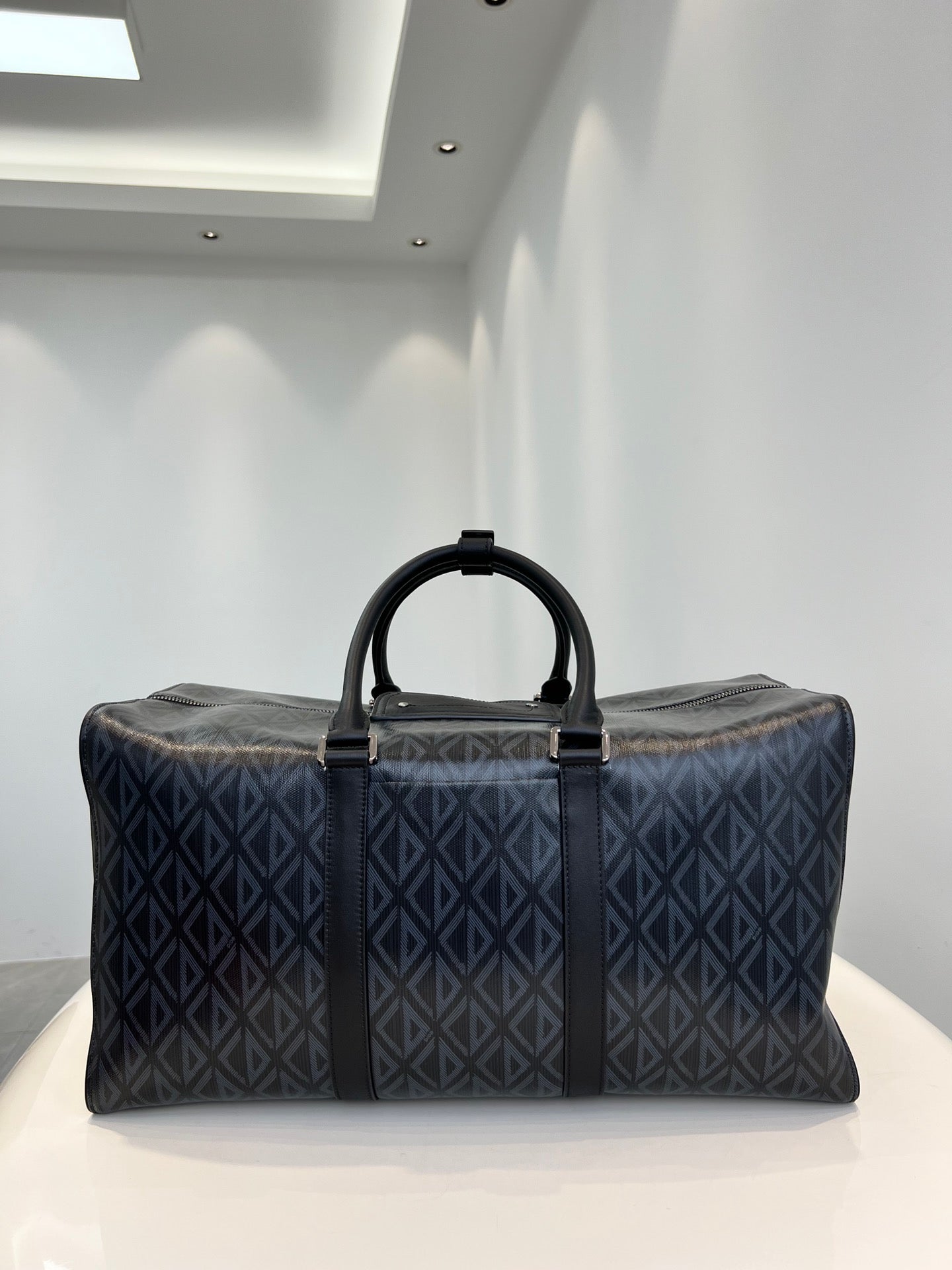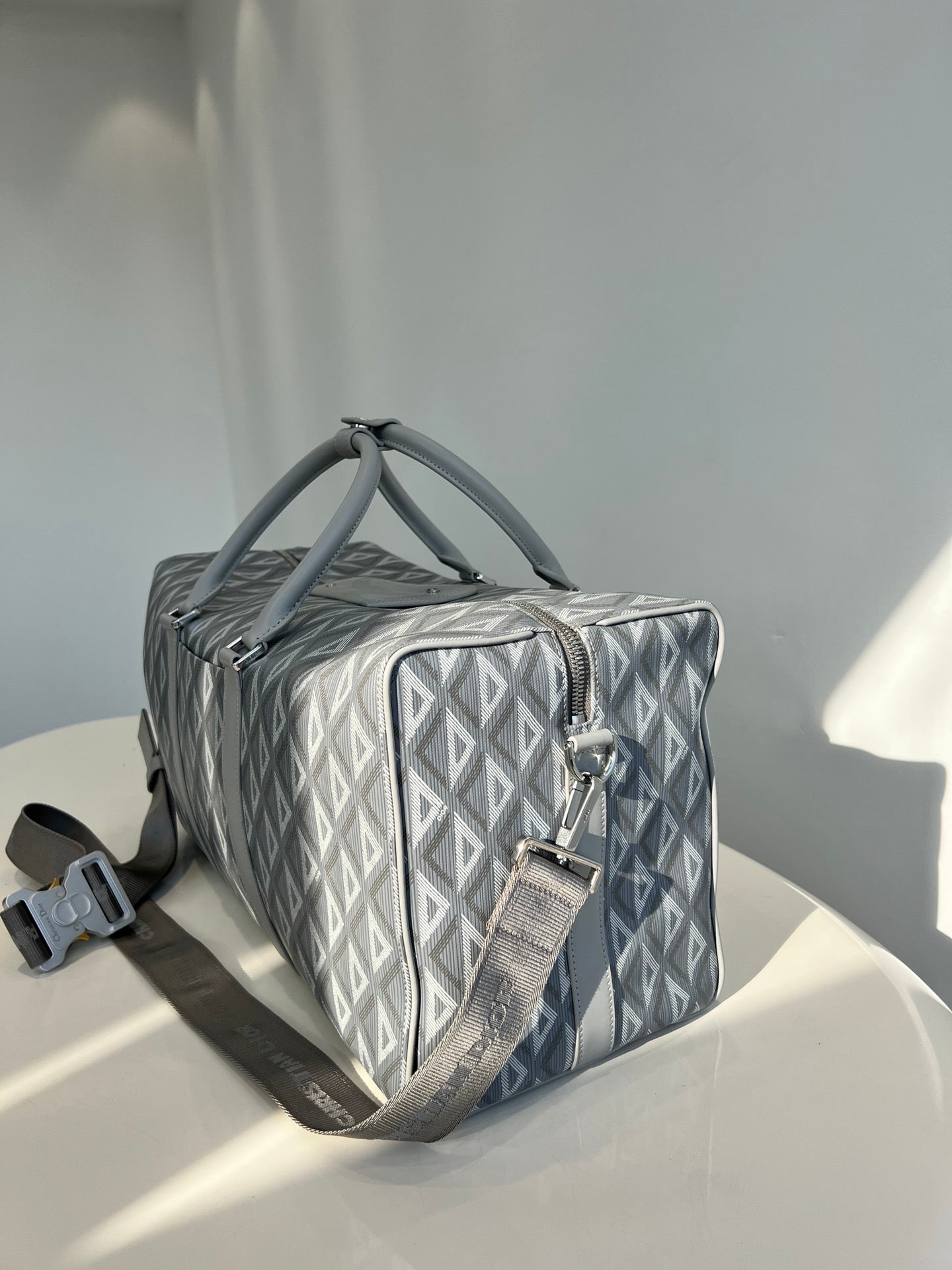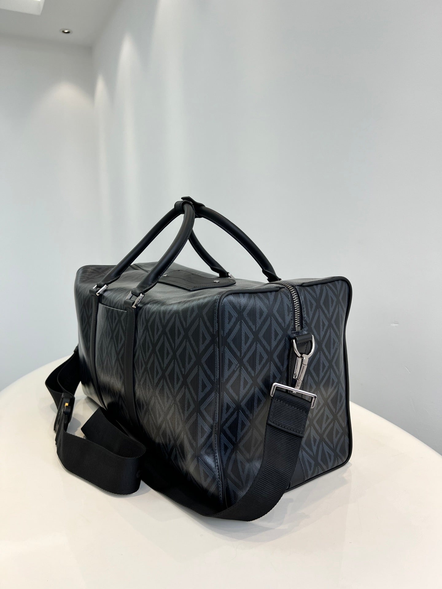 High-end spring and summer new series of men's pattern travel bag, inspired by the diamond cutting process, reshaping the classic logo of the round brand, creating a unique deep relief texture, the body is carefully made of patterned cotton canvas, the fabric is light and flexible, the gloss is good, the grain is clear, the material is wear-resistant and durable, and the charming diamond shape is different from the visual three-dimensional and the degree of fullness. The texture is fantastic. The front is decorated with a small logo, two-way zipper opening and closing with the magnetic design of the saddle flap, which is very convenient, the inside space is large, and there is an internal partition layer, the capacity is huge, and the super can be installed. Double handle design, portable casual atmosphere, with detachable black jacquard adjustable shoulder strap, connected with cool black aluminum buckle metal, this buckle is just too cool. Can be worn on one shoulder or crossbody. The whole bag is very atmospheric and advanced, placed on the suitcase or directly back out are very good, is definitely an indispensable bag for you to go out. Men and women can back, this is really a must, it is too easy to use size: 50X25X21.5cm