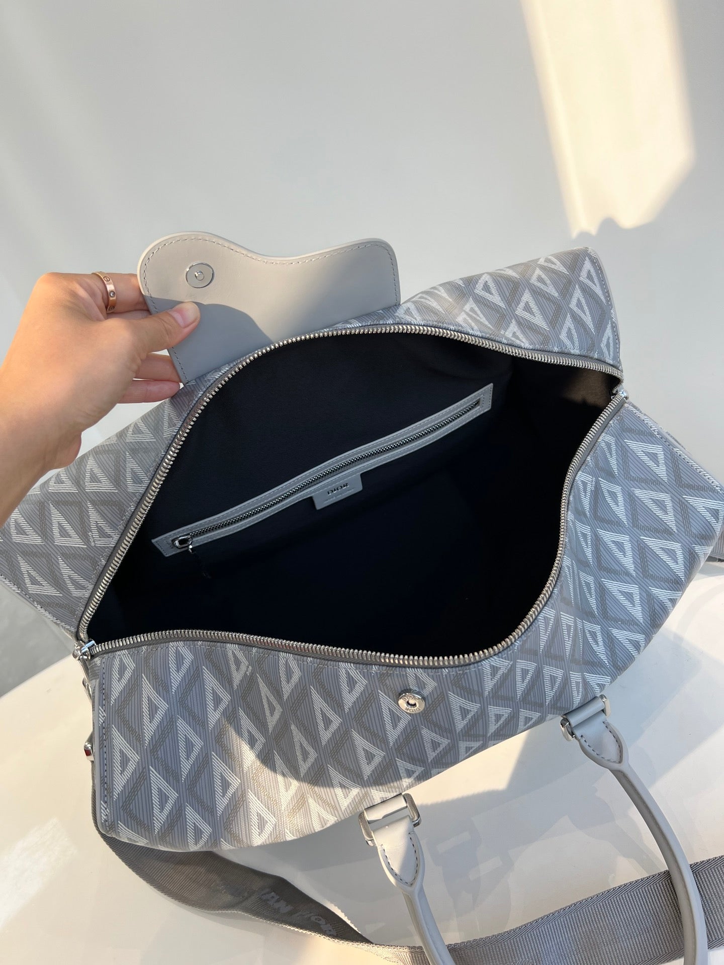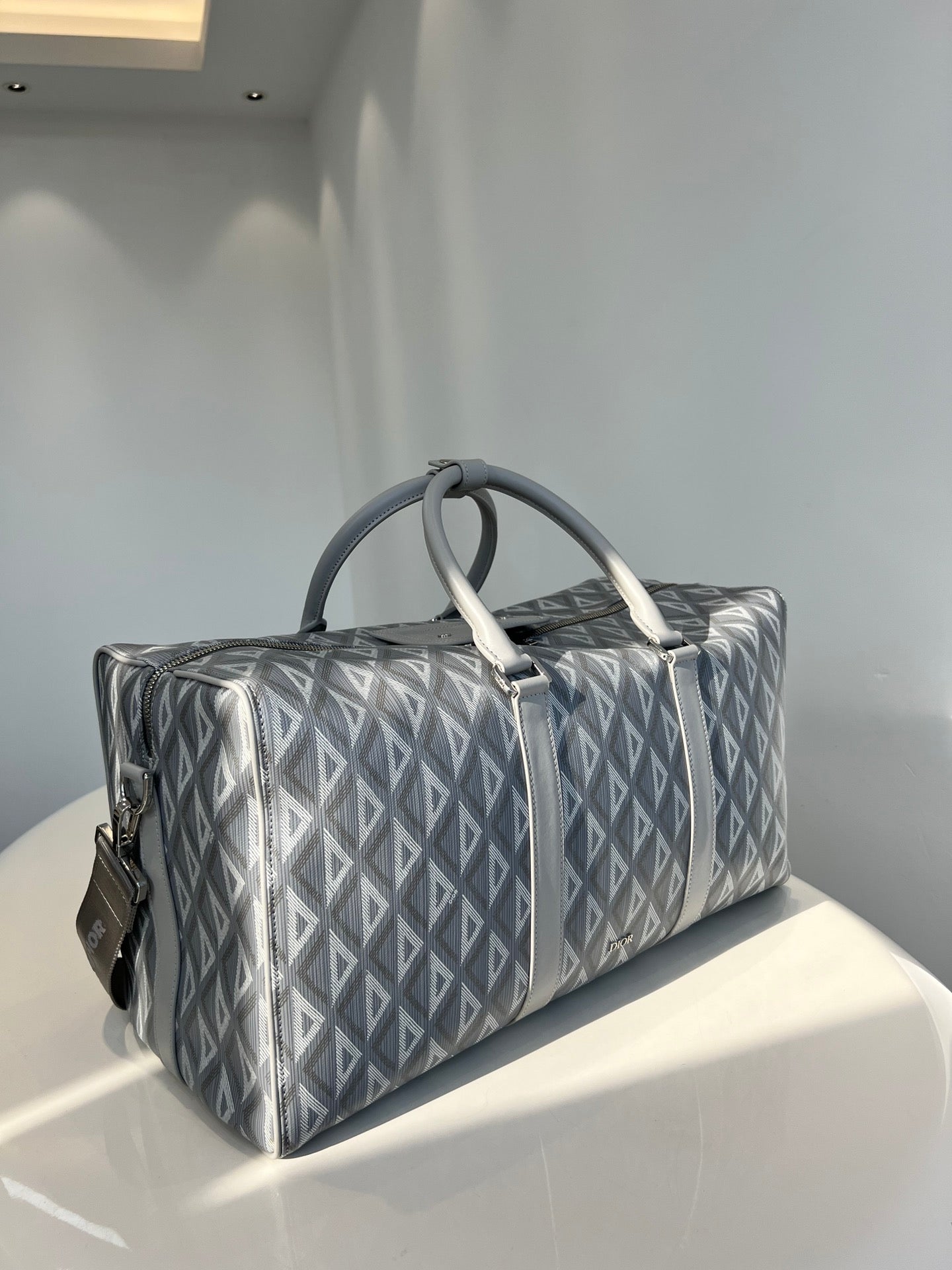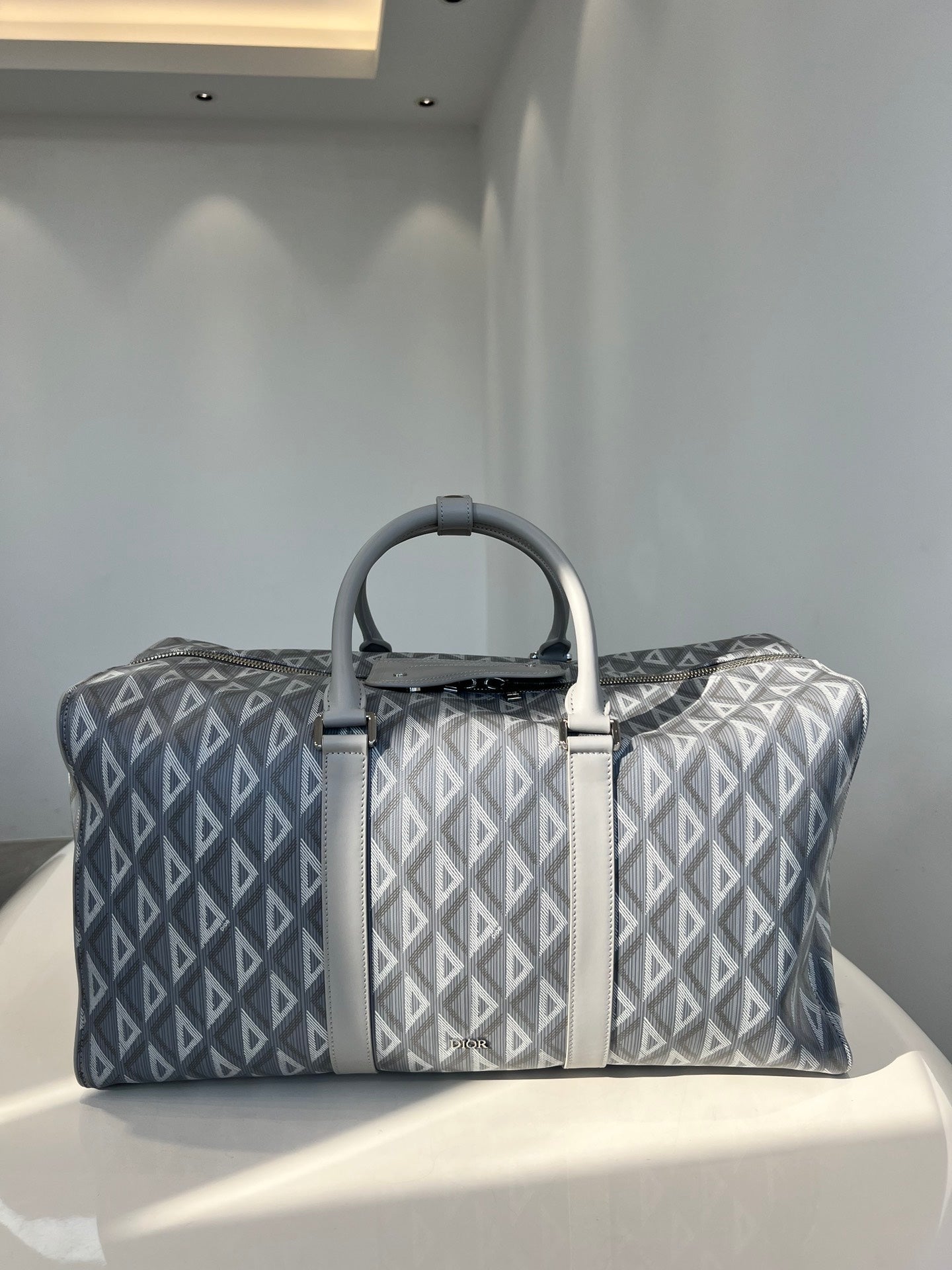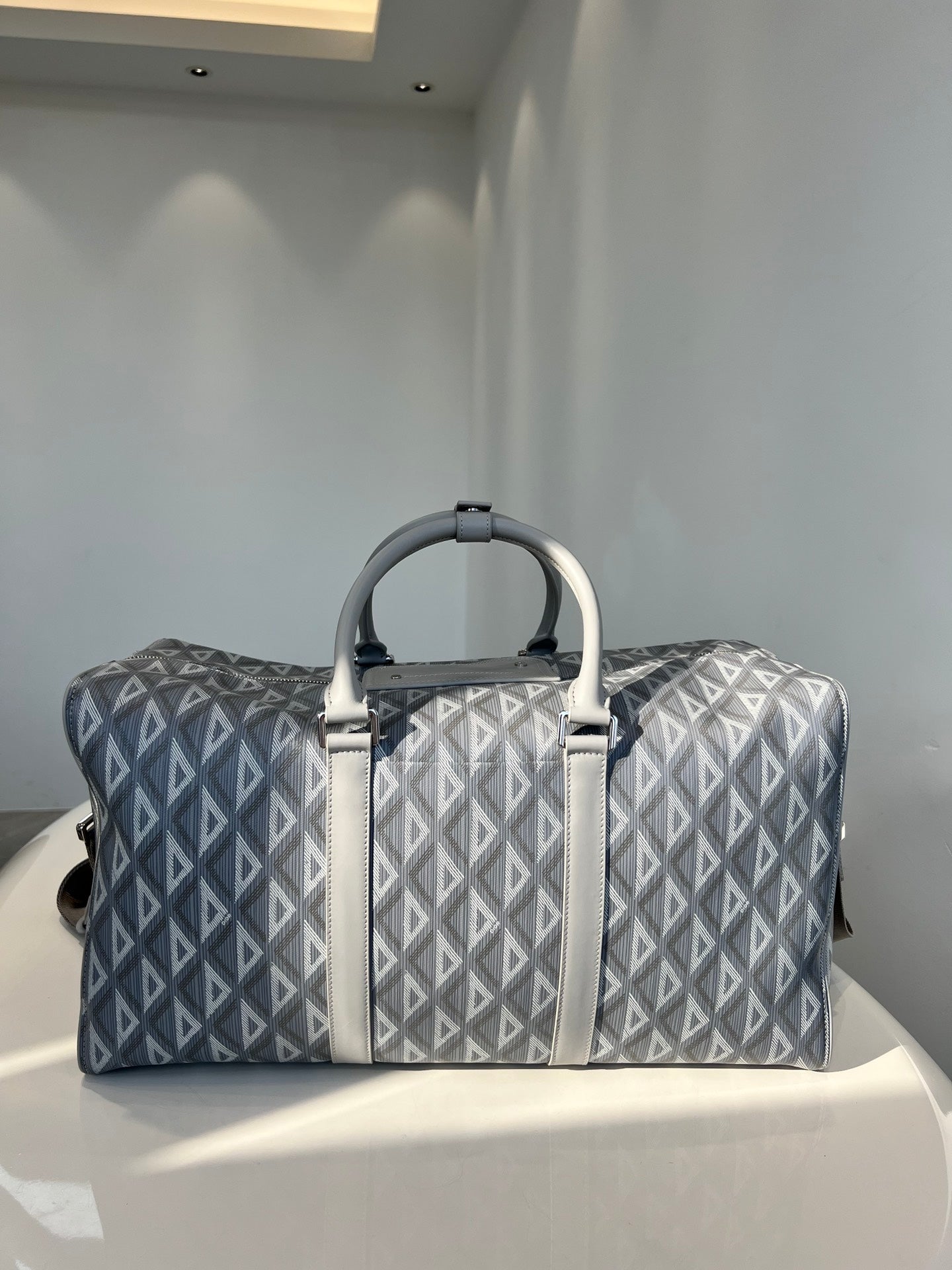 High-end spring and summer new series of men's pattern travel bag, inspired by the diamond cutting process, reshaping the classic logo of the round brand, creating a unique deep relief texture, the body is carefully made of patterned cotton canvas, the fabric is light and flexible, the gloss is good, the grain is clear, the material is wear-resistant and durable, and the charming diamond shape is different from the visual three-dimensional and the degree of fullness. The texture is fantastic. The front is decorated with a small logo, two-way zipper opening and closing with the magnetic design of the saddle flap, which is very convenient, the inside space is large, and there is an internal partition layer, the capacity is huge, and the super can be installed. Double handle design, portable casual atmosphere, with detachable black jacquard adjustable shoulder strap, connected with cool black aluminum buckle metal, this buckle is just too cool. Can be worn on one shoulder or crossbody. The whole bag is very atmospheric and advanced, placed on the suitcase or directly back out are very good, is definitely an indispensable bag for you to go out. Men and women can back, this is really a must, it is too easy to use size: 50X25X21.5cm