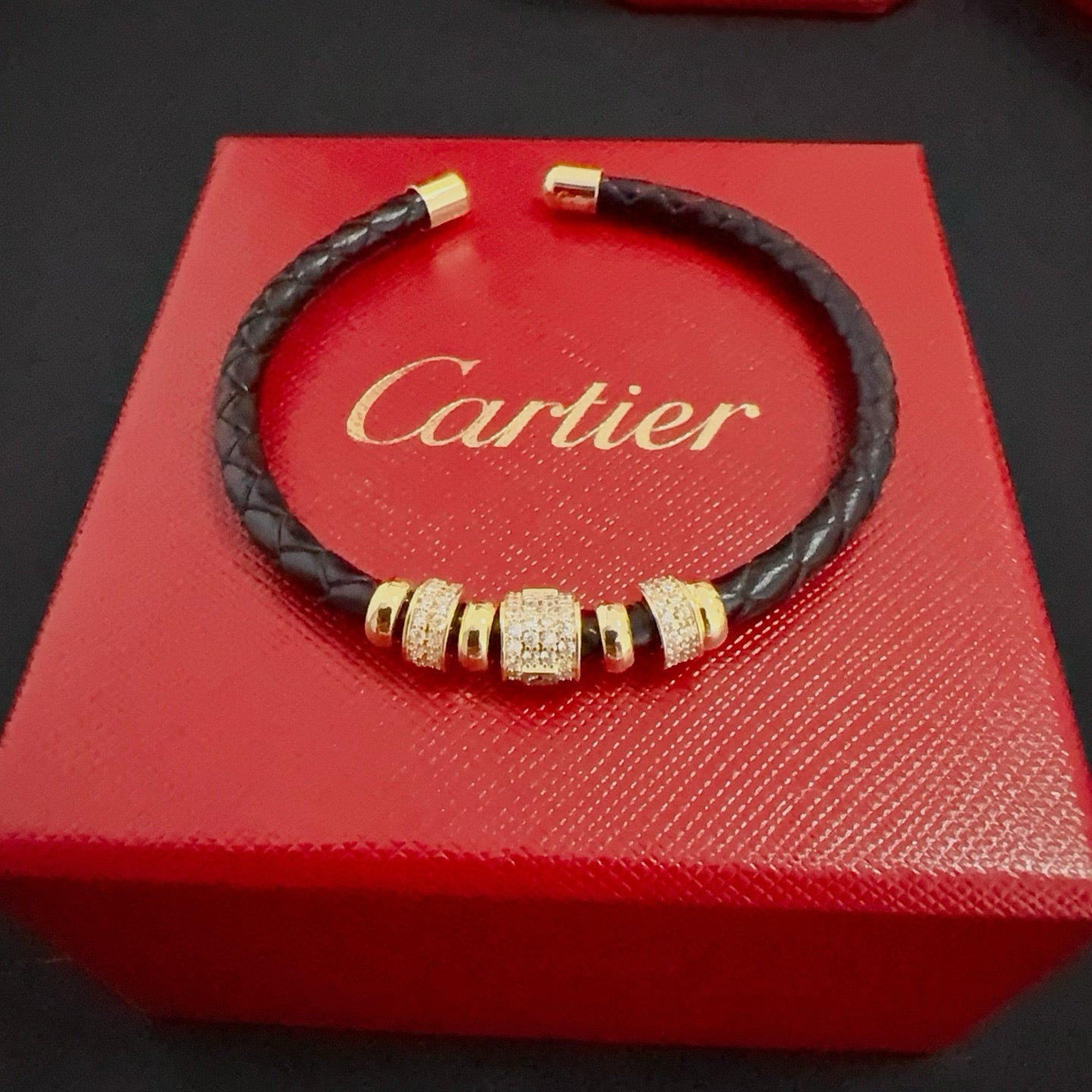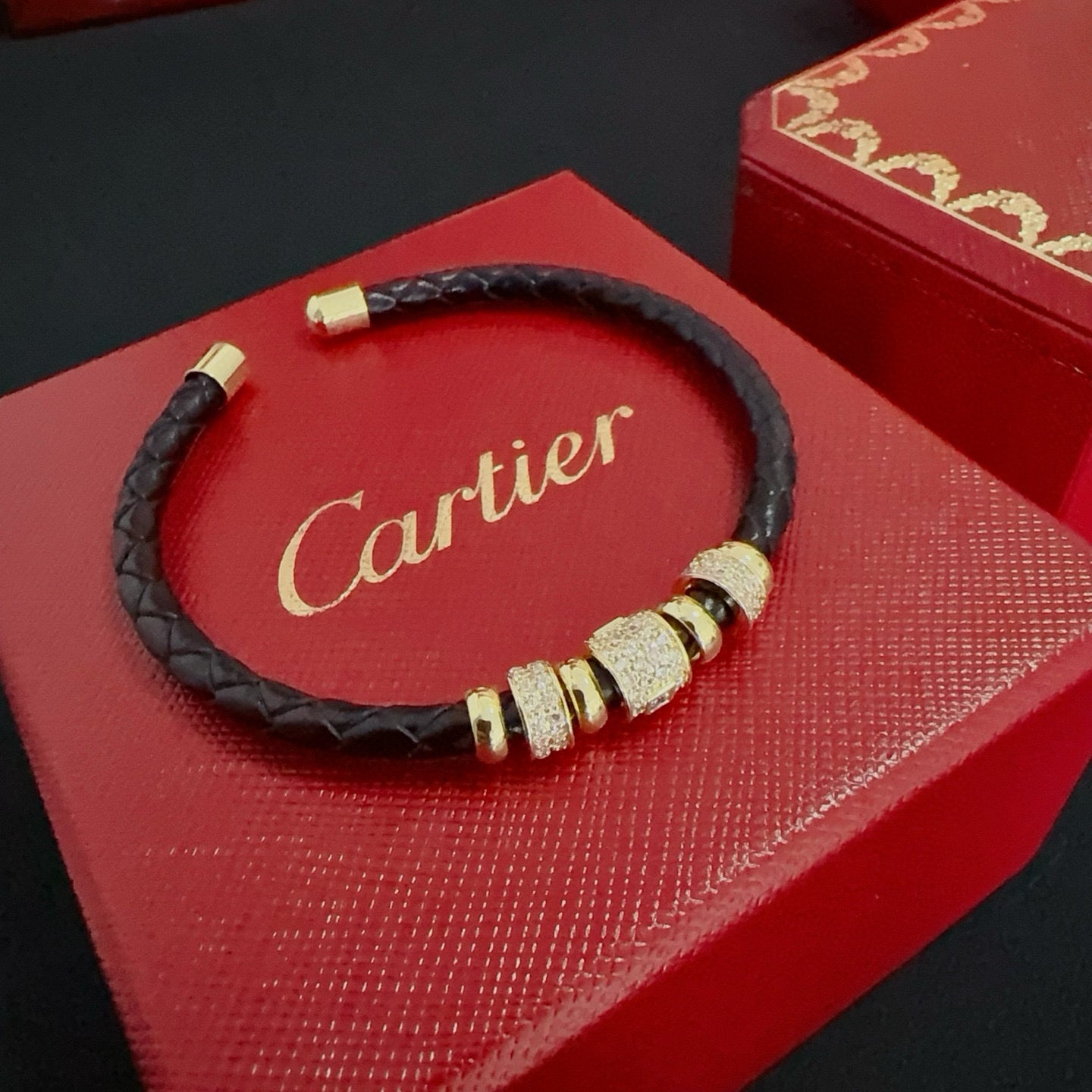 • Classic Leather Bracelet with Glistening Drill-Inlaid Stones – Perfect for Adding Sophistication to Any Outfit