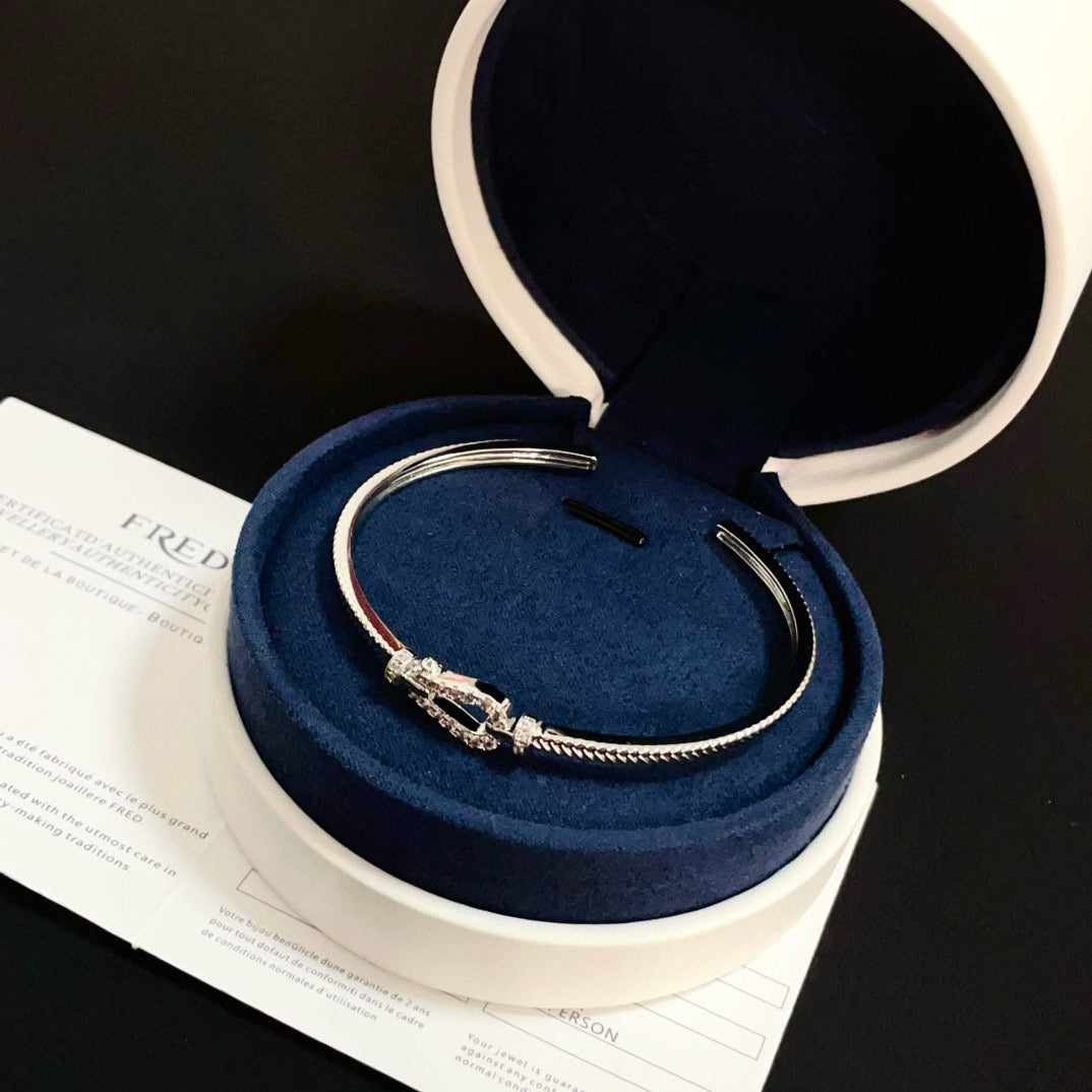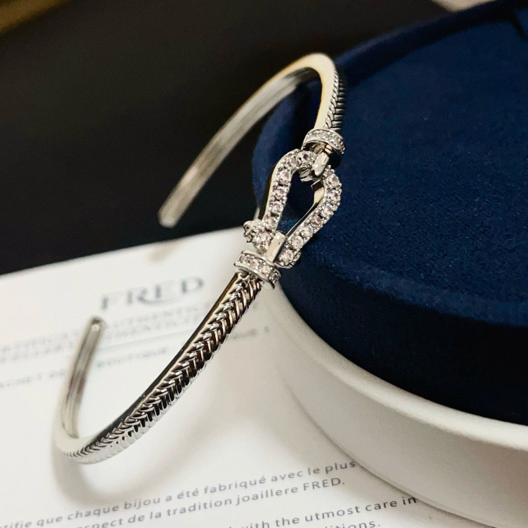 Classic Shine: Silver-Tone Diamond Bangle – Timeless Fashion for Every Look