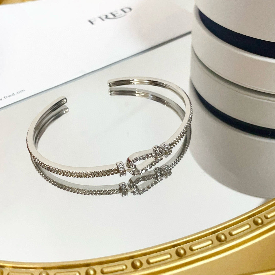 • Classic Shine: Silver-Tone Diamond Bangle – Timeless Fashion for Every Look