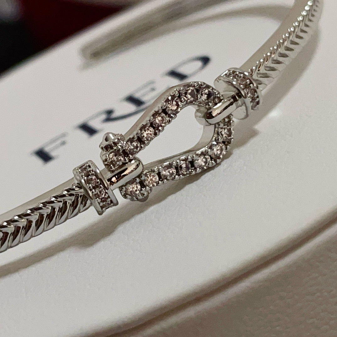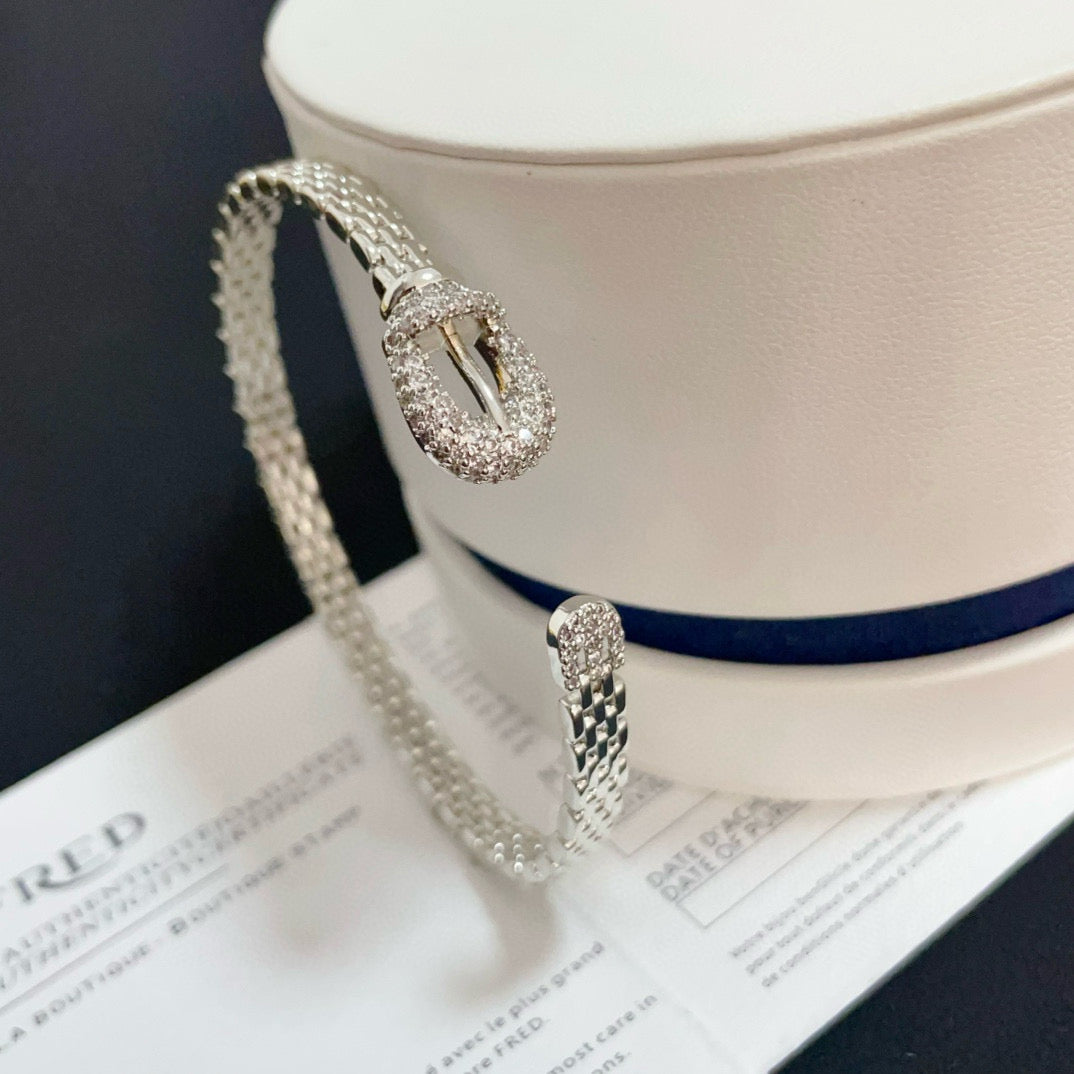 Timeless Glamour: Silver Diamond-Studded Bangle for Elevated Classic Looks